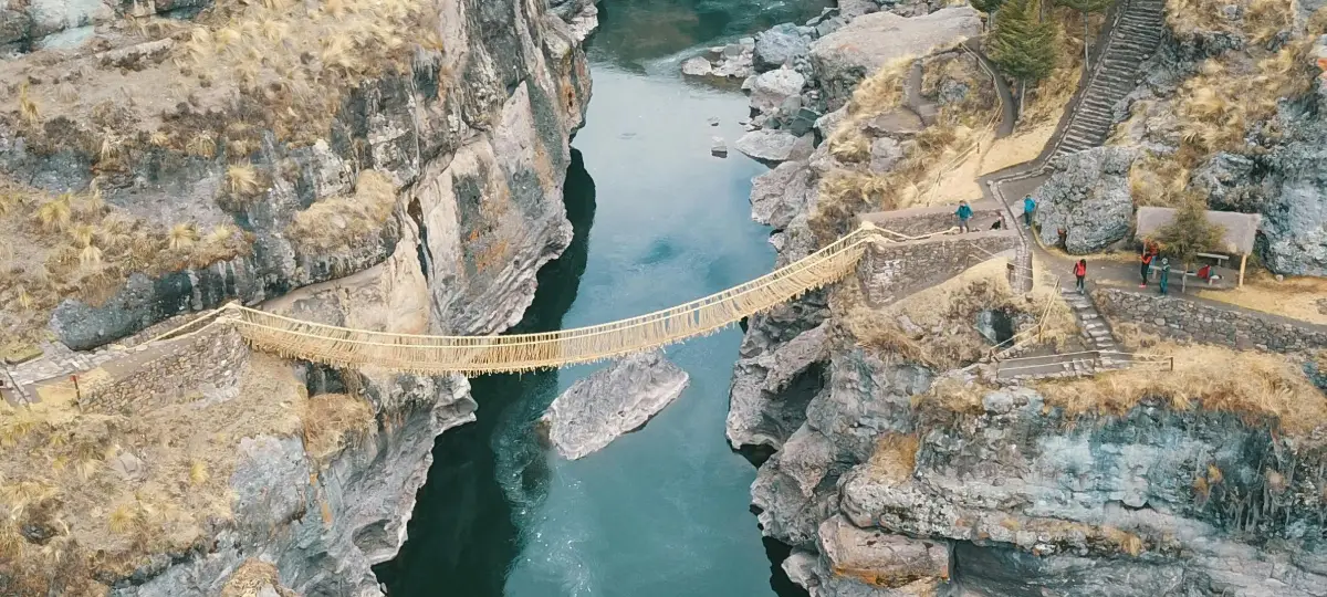 Arrive at the legendary Q’eswachaka Bridge, suspended over the Apurímac River and entirely woven from ichu grass. Learn about its cultural significance and the ancestral technique used by local communities.